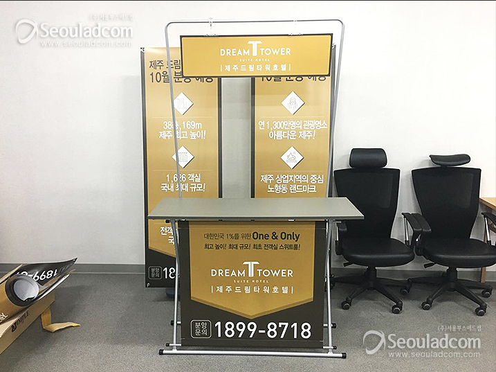X자변형테이블 제주드림타워호텔 홍보테이블 애드씨케이